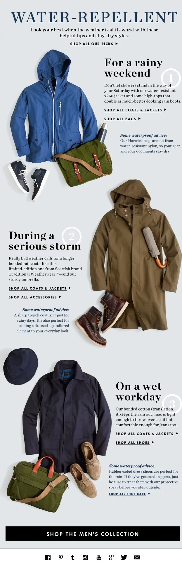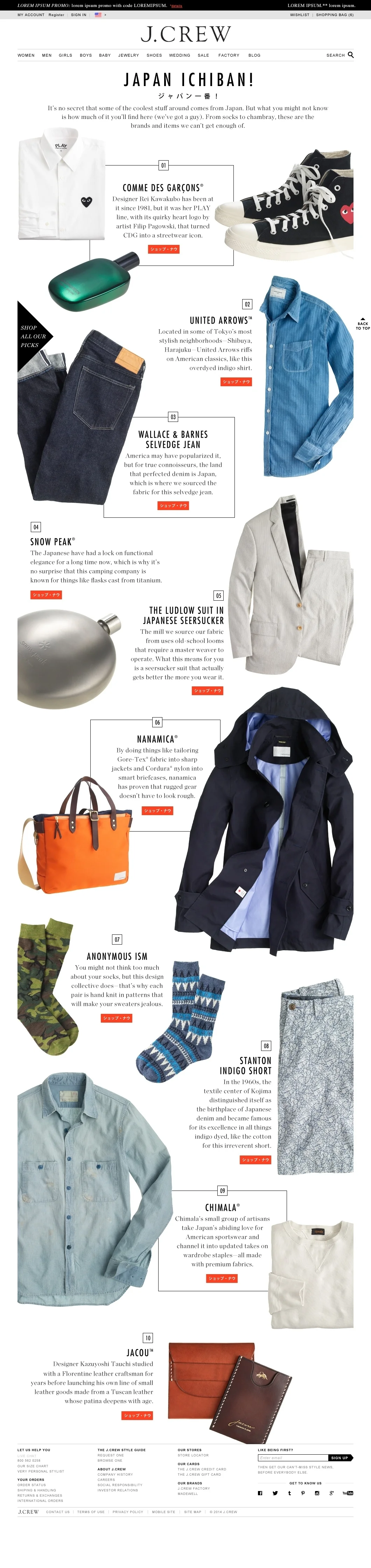 Monthly men's landing page features that highlighted product categories, key items, and styling advice.